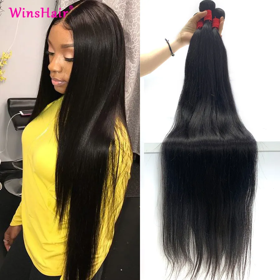 Mejor Extensiones de cabello natural de Winshair Official Store por Winshair recto extensiones de cabello humano de 30 pulgadas paquetes 32 34 36 38 40 pulgada cabello liso paquetes Remy cabello brasileño teje paquete