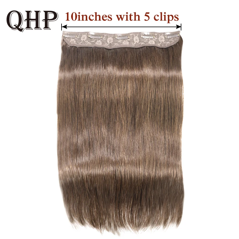 Name: Pelo Clip recto en una pieza extensiones de cabello humano #1 # 1B #4 #8 #613 #27 #32 pelo Remy brasileño 10Inche con 5 Clips