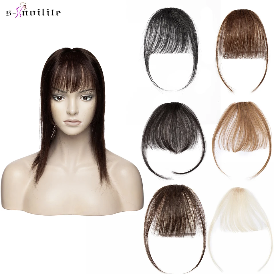 Name: S-noilite-extensiones de cabello humano con flequillo para mujer, pelo Remy fino y pequeño con patillas, peluca con flequillo