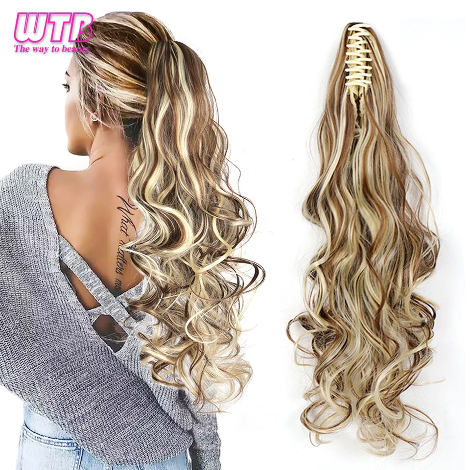 Name: WTB-coleta de pelo largo ondulado para mujer, cola de caballo de 24 pulgadas, postizo de pelo sintético con cordón, onda negra