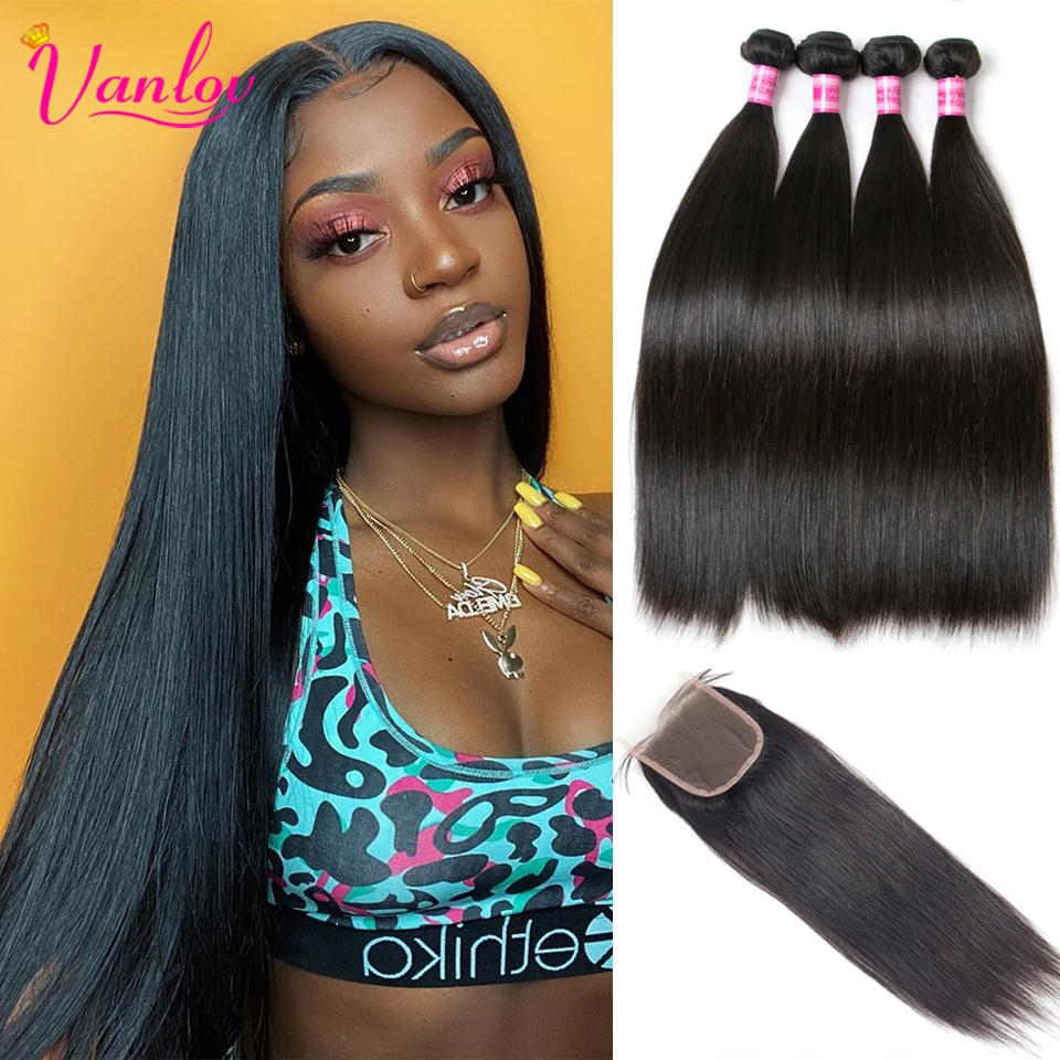 Mejor Extensiones de cabello natural de vanlov Official Store por Pelo recto mechones con cierre brasileño extensiones de pelo ondulado mechones con cierre Jet Back extensiones de cabello humano mechones con cierre cabello Remy