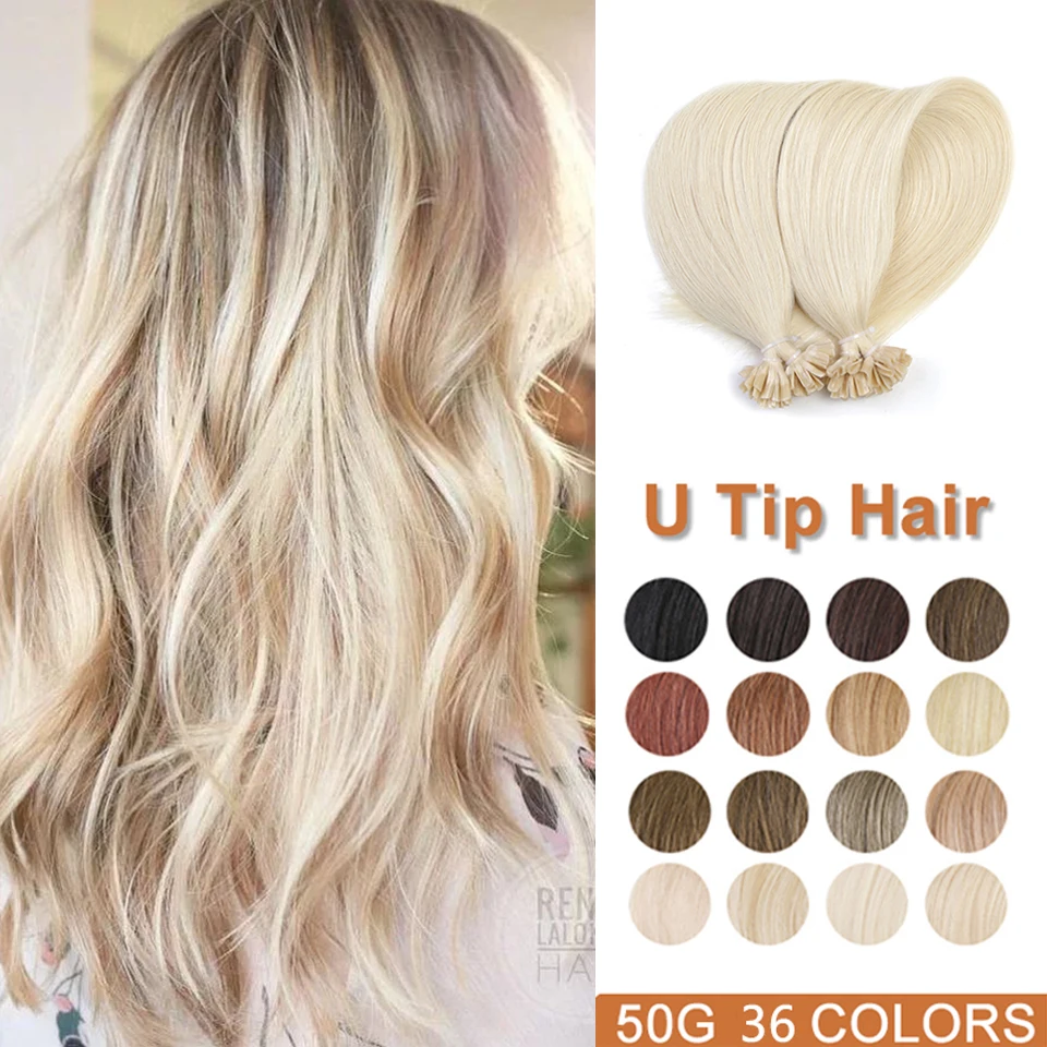 Extensiones de peloNuevo Con U Tip de uñas máquina Remy queratina extensiones de cabello humano recto natural Pre-De la fusión del pelo cápsulas 12-28 pulgadas 50g neQKM67ORaN