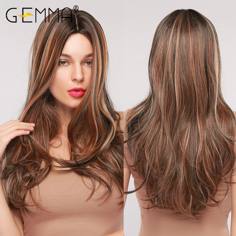 Precio reducido GEMMA-Peluca de cabello sintético largo ondulado Natural para mujer, pelo falso resistente al calor, negro, marrón, Rubio, rojo, resaltado, Cosplay X6MNeWlpABx