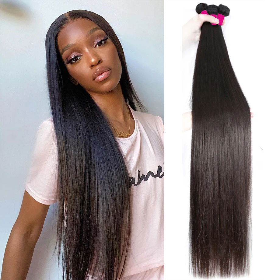 Extensiones de cabello naturalCompra Mechones rectos de cabello Natural brasileño para mujer mechones de cabello liso de 30 pulgadas de largo, 1, 3 y 4 mechones YDwpean0060