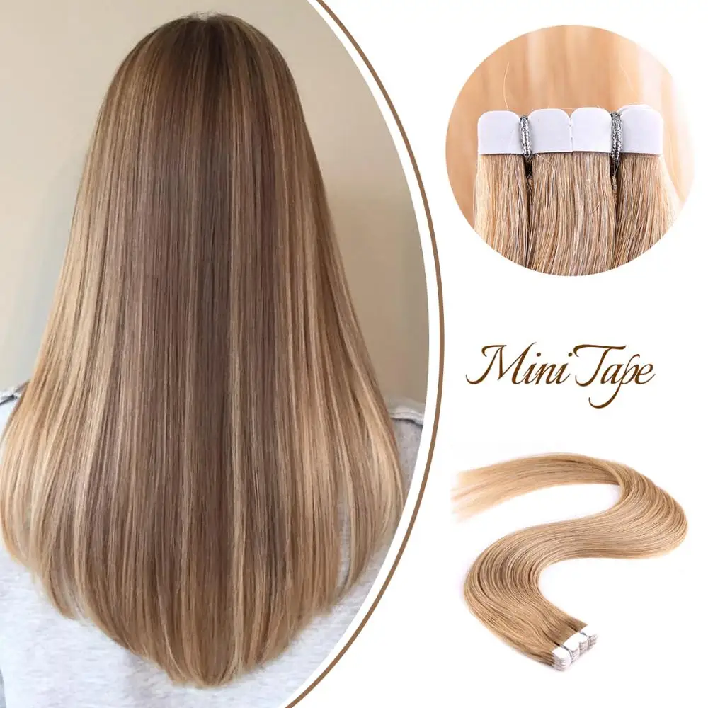 Name: Neitsi-Mini cinta de 12 ", 16" y 20 "para extensiones de cabello humano, Color degradado, trama de piel recta, 100%, cabello Real Natural