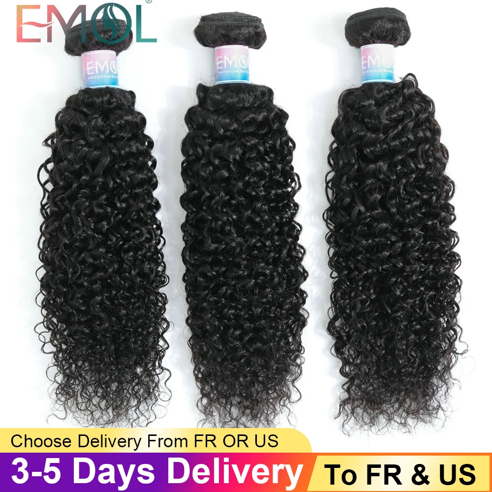 Mejor Extensiones de cabello natural de EMOL Official Store por EMOL malayo Pelo Rizado mechones 100% mechones de cabello humano postizo mechones 3/4 piezas no Remy extensiones de cabello humano rizado