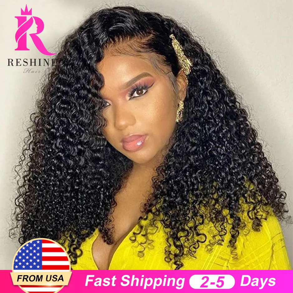 Mejor Pelucas de encaje de RESHINE Official Store por RESHINE-Peluca de pelo rizado de Mongolia, cabello humano con encaje frontal 13x4, 180%, 13x6, cierre de encaje rizado, prearrancado