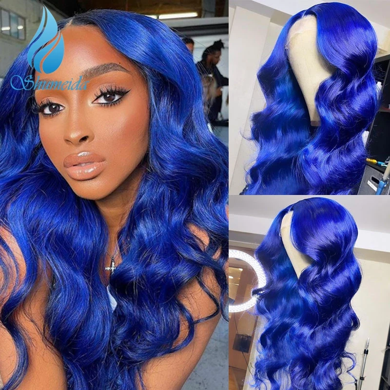 Name: SMD-Peluca de cabello humano con encaje frontal 13x6, Color azul ombré, línea de pelo prearrancado, pelo Remy brasileño sin pegamento, pelucas con minimechones