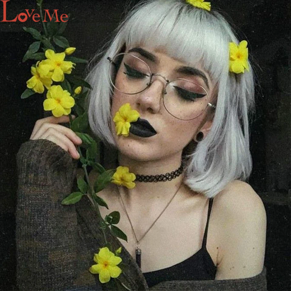 Name: Pelucas de Bob corto liso LOVE ME para mujeres negras, peluca con malla frontal colorida, pelo sintético, fibra resistente al calor, Cosplay
