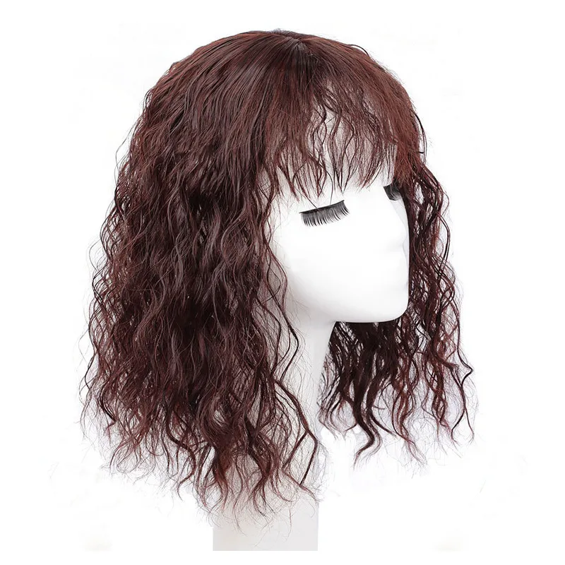 Name: Base de seda Topper humanos pelo pieza Clip con flequillo mujeres corona de Clip de extensión de cabello peluquín en pelo leve pérdida de cabello